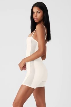This to-die-for onesie in cottony-matte Airbrush fabric gives easy movement, light support and sculpting stretch. Underbust support, a built-in shelf bra, and a flexible, corseted bodice with mesh paneling create a snatched silhouette for studio or street.