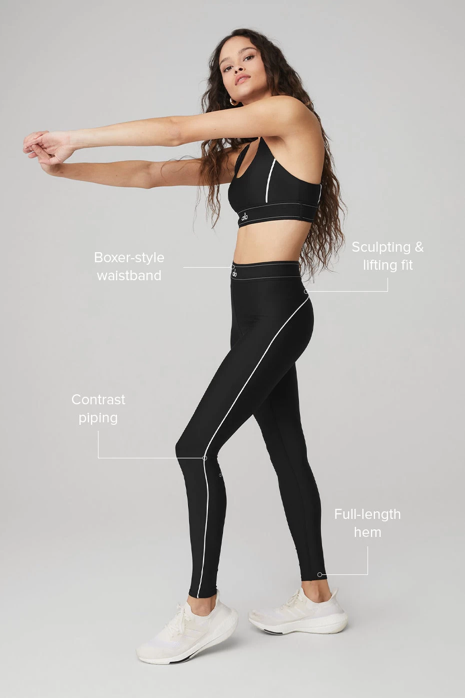 Ready for the studio, or the streets. The Airlift High-Waist Suit Up Legging in our ultra-smooth, second-skin Airlift features ultra-forward piping & back yoke detailing, and an elastic, Alo-logo waistband. Match it up with the Airlift Suit Up Bra or pair up with your fave white top.