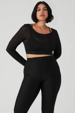 The Airlift Long Sleeve Ballet Dream Bra belongs center stage, thanks to a bold mix of sleek, practice-perfect Airlift and breathable mesh fabric. A low boatneck layers over a light-support bra with a debossed logo band. Create a stunning, head-to-toe look when you pair this with the matching legging.