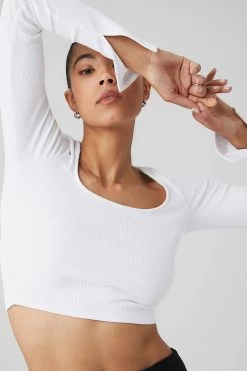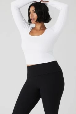 Seriously cool, all-day wearable & so good solo or layered. The Alosoft Ribbed Show Stopper Long Sleeve is the comfiest way to get to-and-from, made with super-soft & contouring ribbed Alosoft fabric in a full length, fitted silhouette. Hook up this new staple with on-trend bikers or cool capri leggings and head out.
