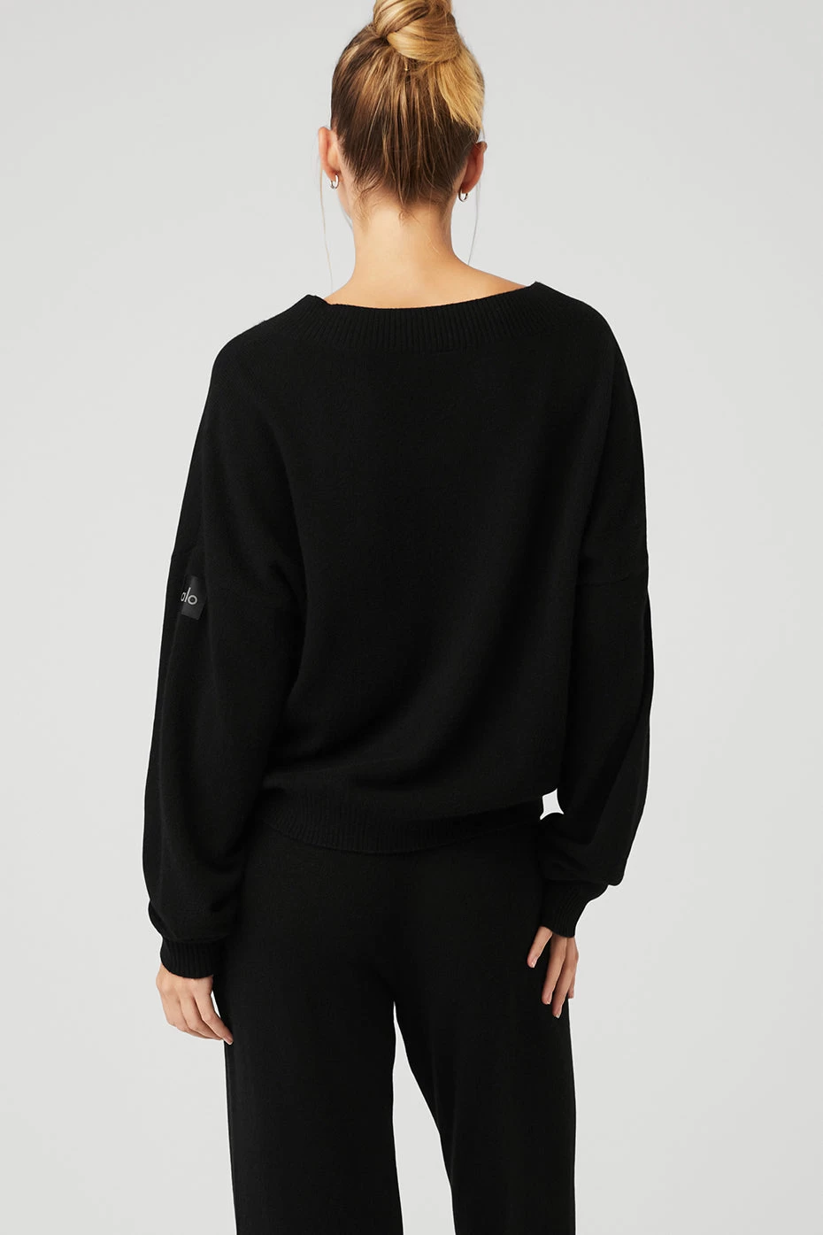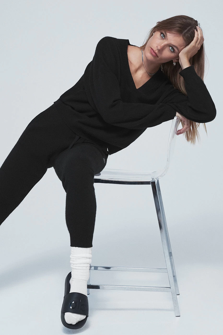 Your sweater stash isn’t complete without the Cashmere Jet Set V-Neck Pullover. This sweet, dropped-shoulder pullover features a V-neck, cool sleeve details, and ribbed cuffs & waistband. Wear it with literally everything and stay cozy in the cold.