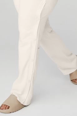 Serious track pant goals. The Courtside Tearaway Snap Pant is made with diagonal French terry and has a loose, straight-leg silhouette, side pockets, interior drawcords, and snaps down the sides. Wear it with a baby tee and sneakers.
