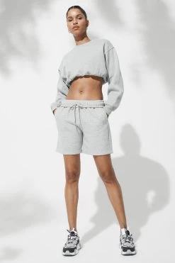 Oversized, cropped, and cinched just right, the fleece Devotion Crew Neck Pullover is the perfect blend of cozy and street-ready. Tuck it into your bra for maximum volume.
