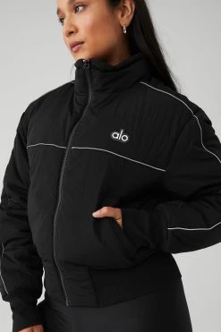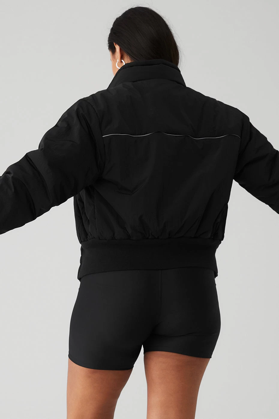 Stay in the race with this luxe layer. The Drop Top Jacket is the ultimate go-to when chilly weather strikes, with a fleecy interior, handy zippered side pockets for small essentials and a ribbed knit waistband for a subtle cinched effect. Layer it over a cute crop top and statement high-waist leggings and hit the pavement.