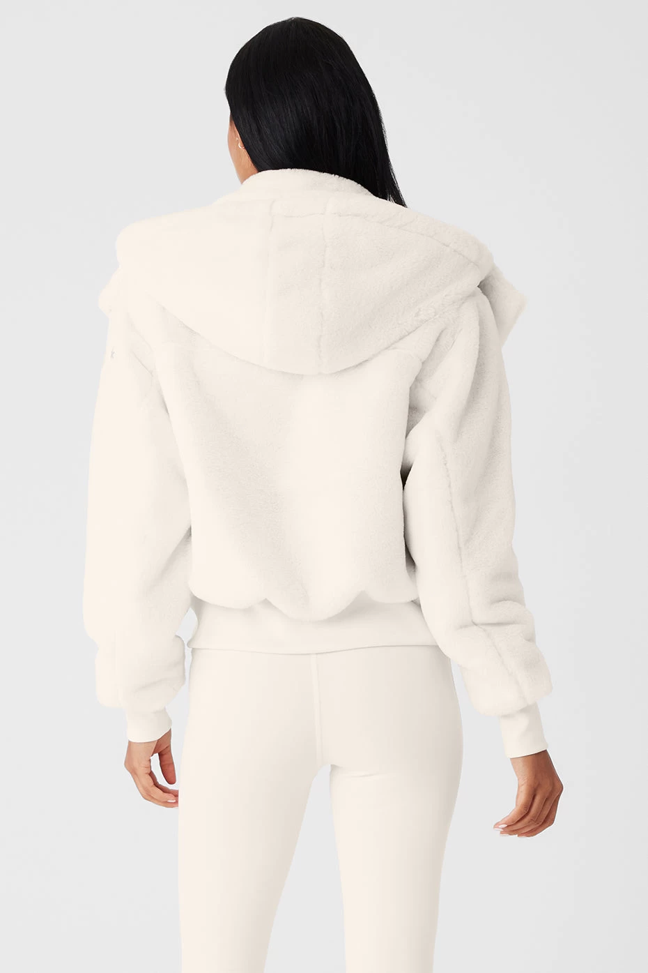 The Foxy Jacket is looking even foxier in new, faux fur. Lined with luxe, satin-like fabric and equipped with a removable hood and zip pockets, our ultra-comfy Foxy Faux Fur Jacket will get you to the studio every time. Features a front-zip closure, oversized silhouette and ribbed cuffs and hem.