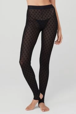 Flocked High-Waist Chalet Chic Stirrup Tights – Black
