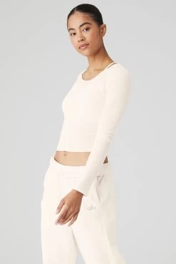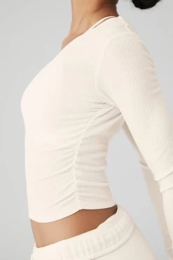 Put the “warm” in warm-up with the Gather Long Sleeve. It’s made with a soft ribbed knit and has a cropped, fitted silhouette and cute cinched sides. Pairs pretty with the High-Waist Goddess Legging.