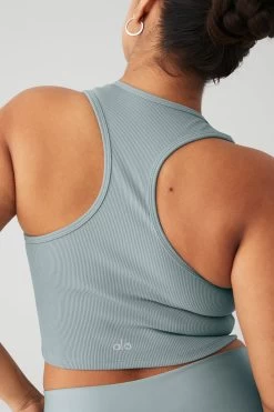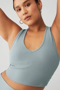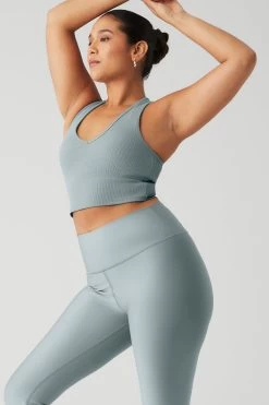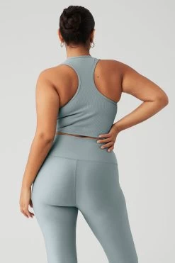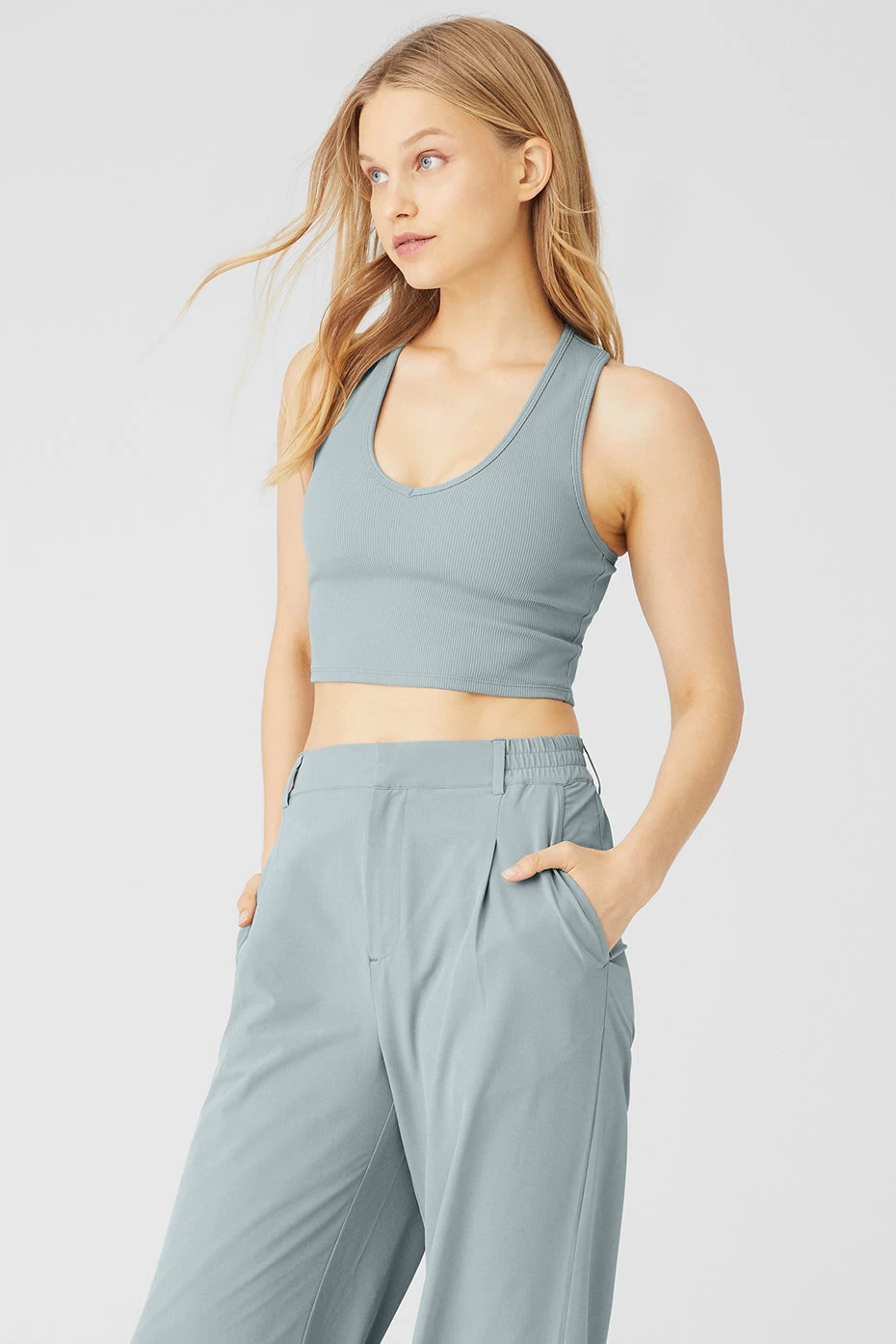The Goddess Ribbed Cropped Racerback Tank has everything you want in a comfy, go-to top. Made in a soft ribbed knit, this tank features a V-neck, thick shoulder straps and cool racerback styling. Create so many versatile looks when you pair this with any signature Alo high-waist bottom.