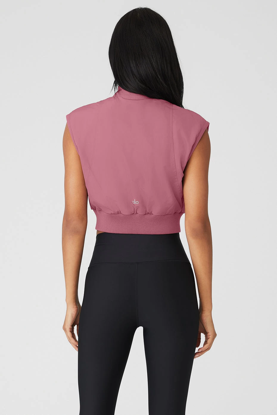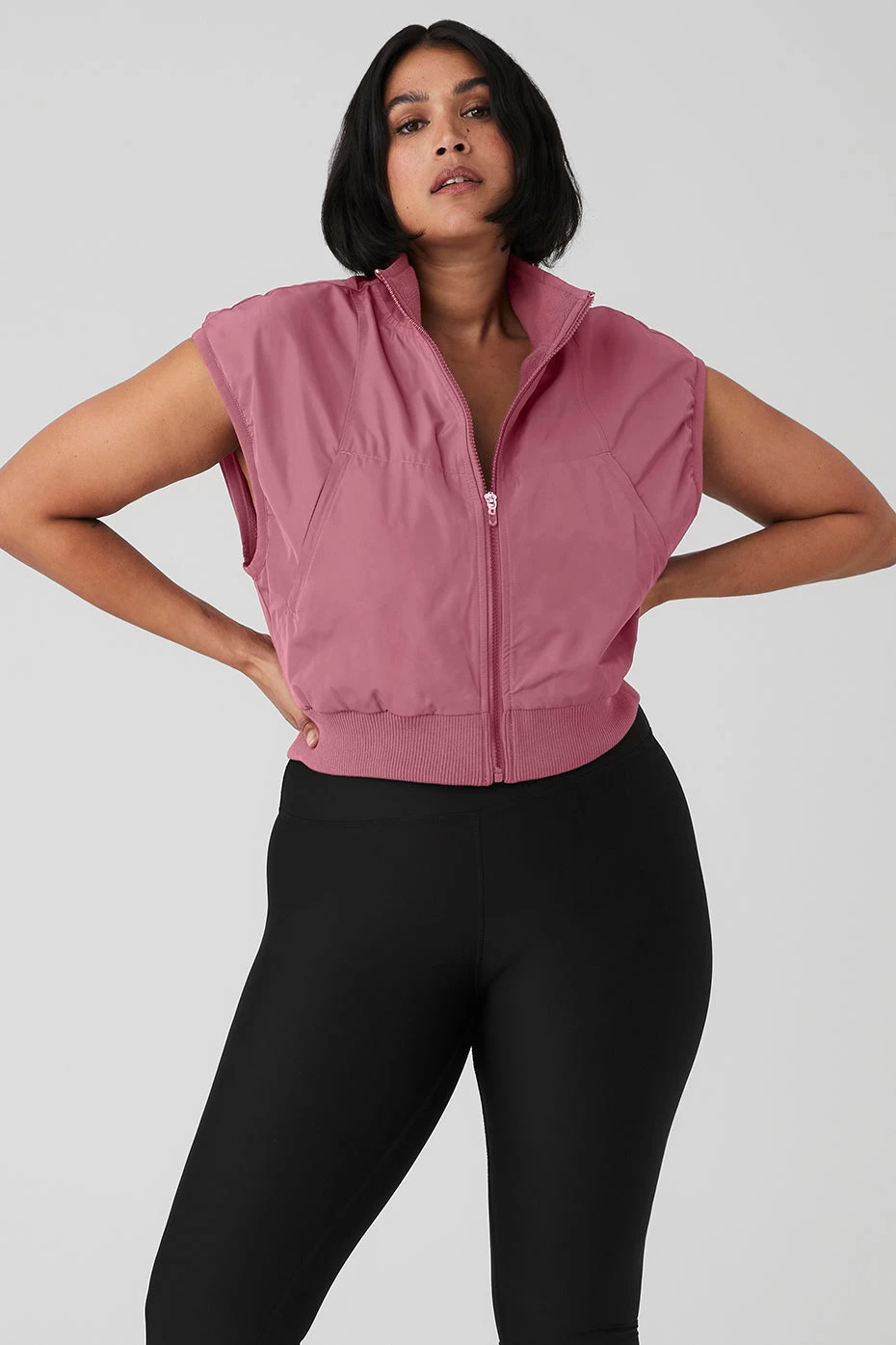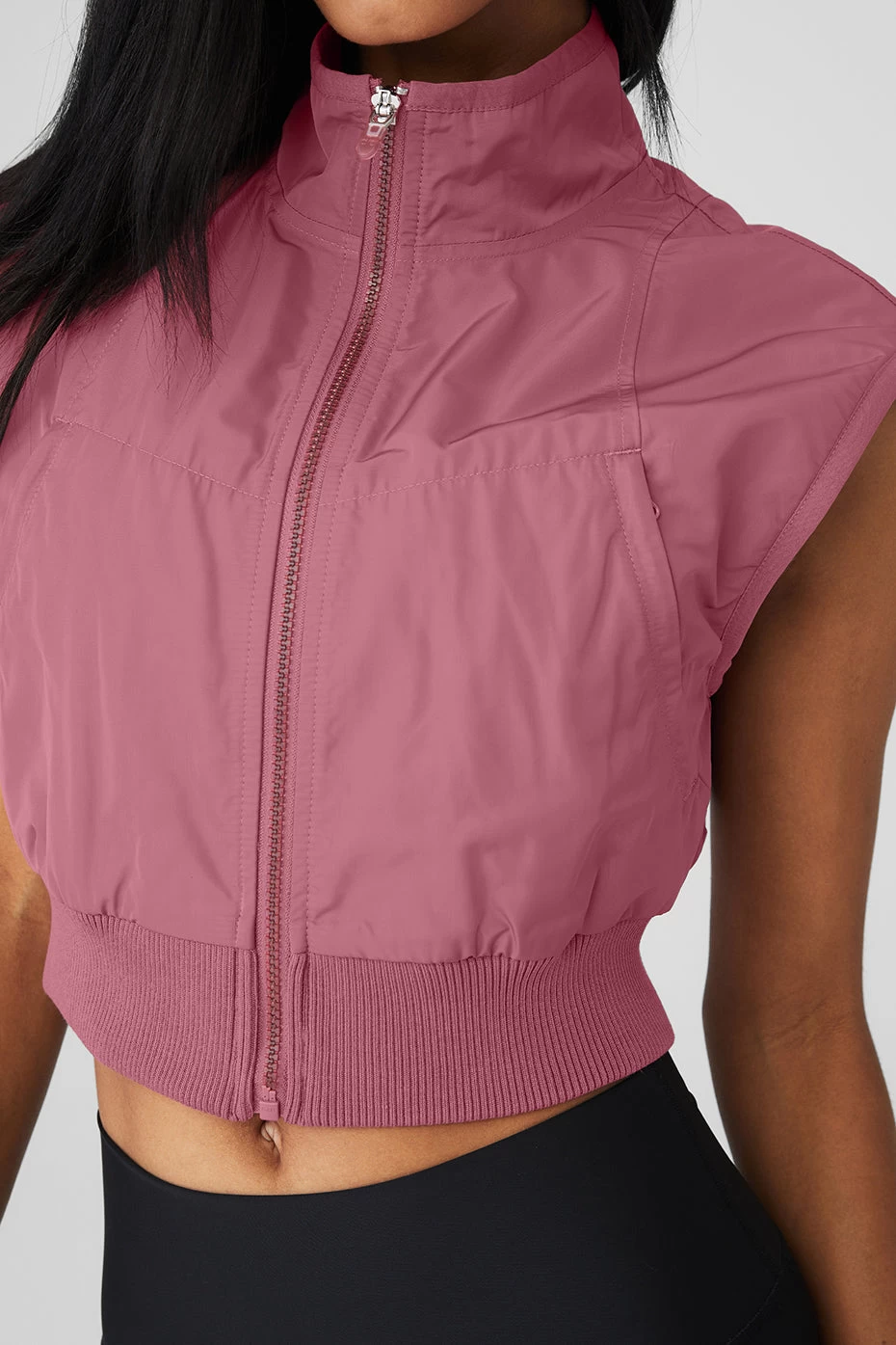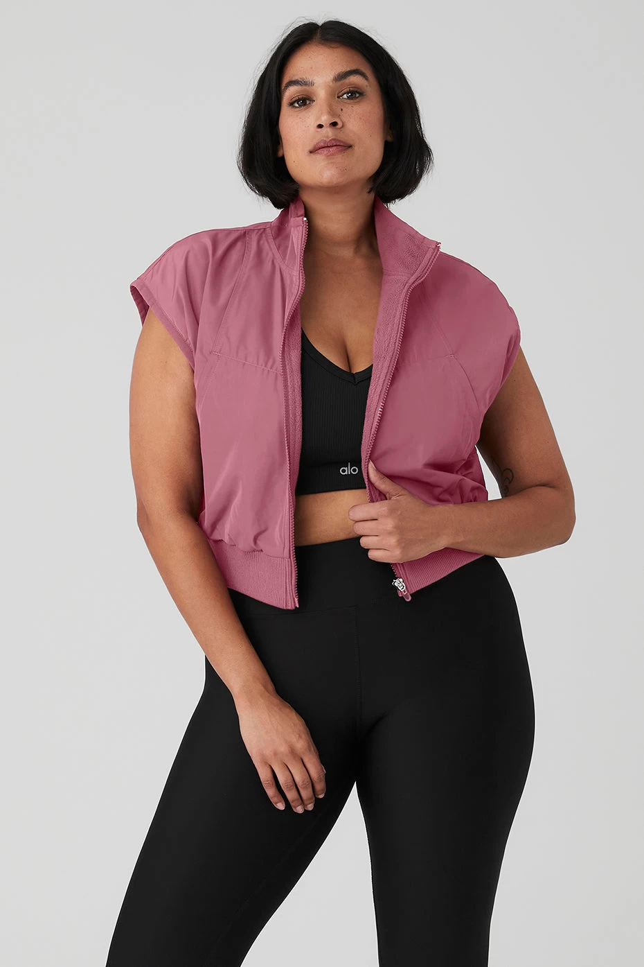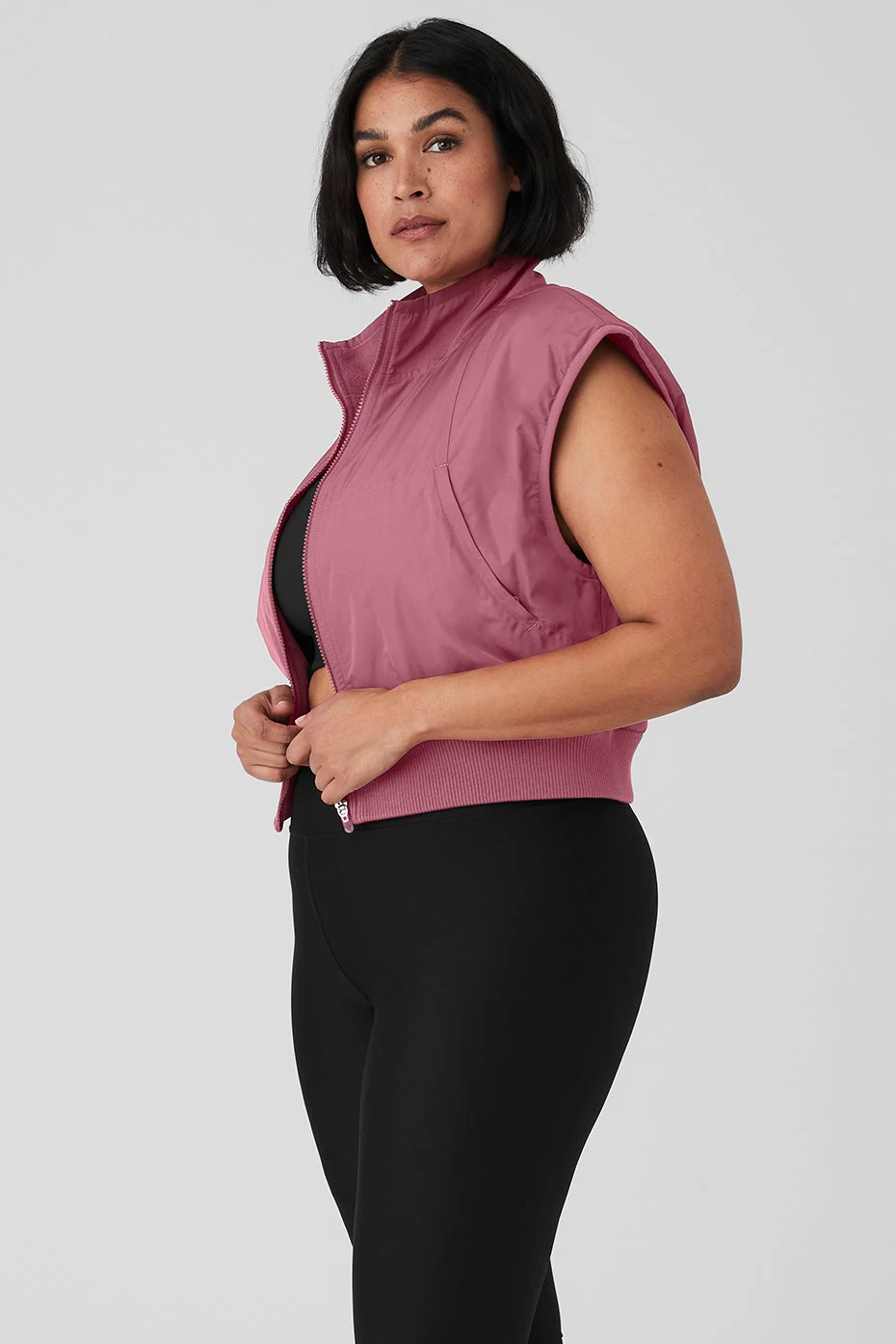 Versatile warmth without the unnecessary bulk, the In Motion Vest is destined for cold-weather adventures near and far. This lightweight woven vest with polar fleece lining provides the perfect amount of warmth for to-and-from, with a tall collar for added protection against the chill. Forward, angular sleeves, a contouring ribbed waistband and elevated princess seams create the perfect silhouette. Built-in side slip pockets hold small, on-the-go essentials.