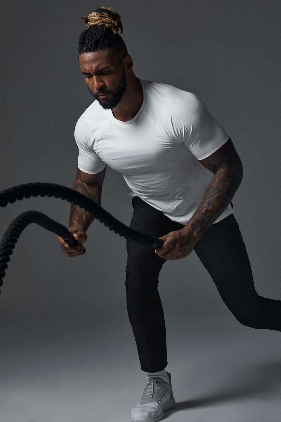 We’re redefining all-day performance wear with the Repetition Pant. This tailored and ultra-comfy pant is elevated in every way with darting details that define the knee and internal draw cords for a sleek overall finish. Pair it with a favorite crew neck for a head-to-toe statement Alo look.