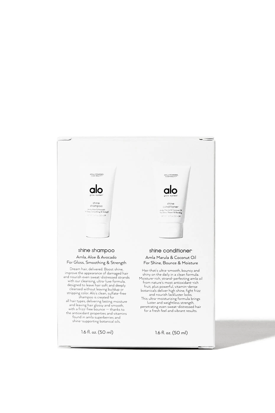 - Includes travel-sized Shine Shampoo (1.6 oz) and Shine Conditioner (1.6 oz)