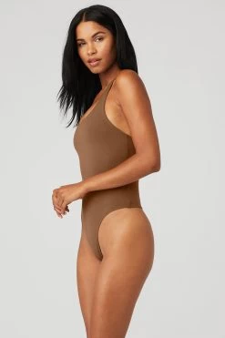 Literally the perfect layer — no VPL, tons of cool. The Sleek Back Bodysuit in sculpting Airbrush features a built-in shelf bra for light support, a T-back, scoop neckline and a thong backside for super-smooth layering under leggings.