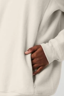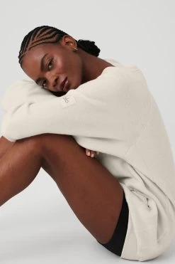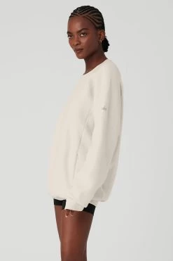 - Super-soft fleece crewneck with reversed panels